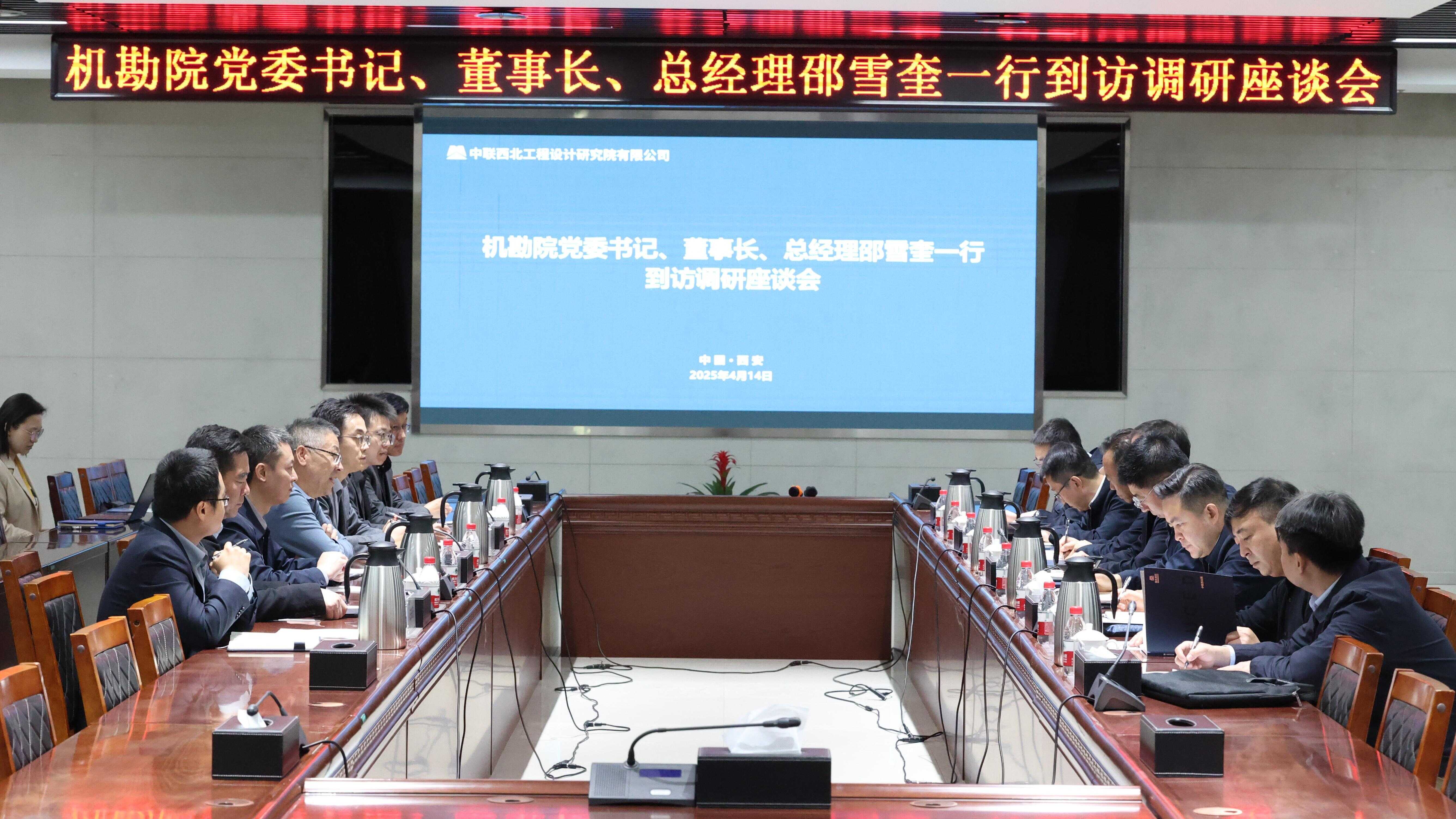 邵雪奎對中聯西北院的熱情接待表示感謝,并介紹了機勘院發展歷程、特色業務、科技創新等方面情況。他表示,中聯西北院歷史積淀深厚,在民用建筑、工業領域業績突出。期待雙方發揮各自優勢,進一步強化在數字化建設、設計咨詢、工程總承包、科技創新等方面的互學互鑒和業務協同,共同實現高質量發展。